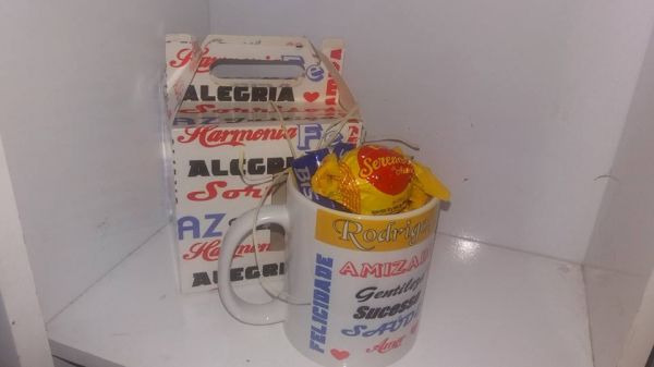 Caneca Personalizada com Caixinha Personalizada e bombom Tema Livre!